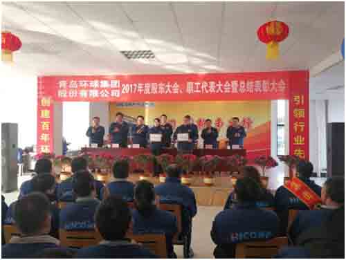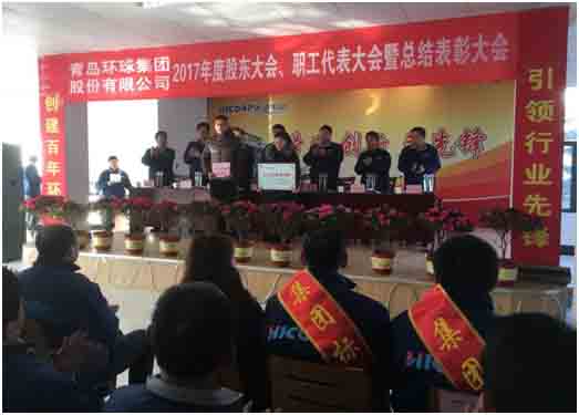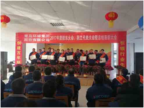 青島環(huán)球集團(tuán)股份有限公司2017年度股東大會、職工代表大會暨總結(jié)表彰大會于2018年2月11日上午在集團(tuán)職工餐廳隆重召開。來自集團(tuán)各公司、事業(yè)部的股東和職工代表共計221人參加了此次會議。